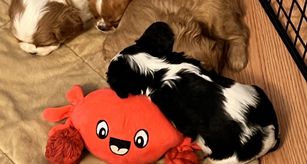 Our puppies include blenheim, ruby, tri-color, and black and tan. Colors will vary depending on the parent dogs.
