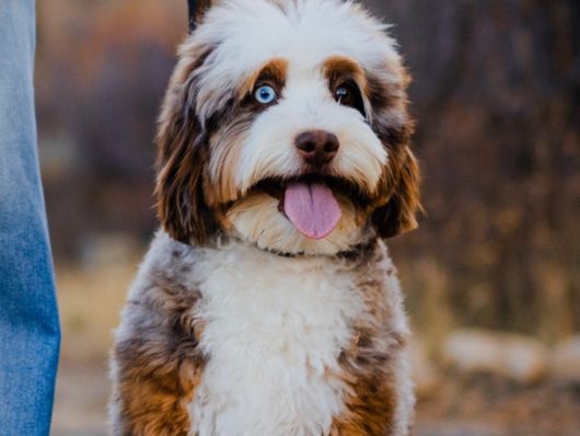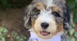 Ginger is a STUNNING chocolate tri Merle Bernedoodle. She is 25 lbs. she loves to meet knew friends(dogs and ppl) and loves to be apart of the action! An absolute sweetheart!