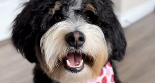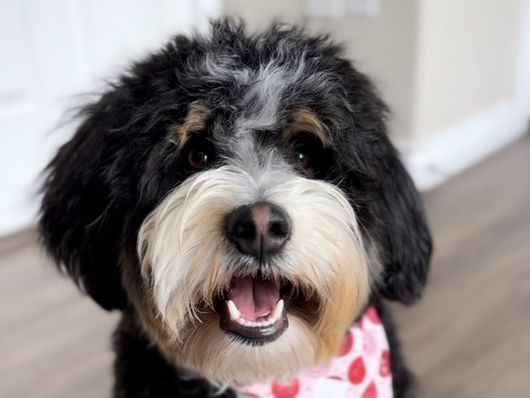 Elvis the Bernedoodle is a neighborhood favorite, known for his lovable personality and calm, gentle temperament. He adores kids and thrives in his home.