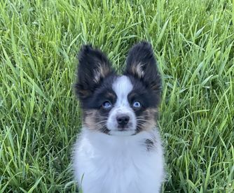 I got into breeding after I got my very own Papillon in 2012. I had already known the breed didn’t have every trait I loved. So after a couple of years, we decided to pair my Papillon girl Jocianna to a small Miniature Australian Shepherd boy named Biscuit. We were thrilled with the puppies they produced and realized that others loved those pups just as much as we did.