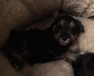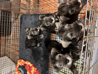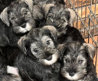 Our puppies include black and silver, black, and salt and pepper. Colors will vary depending on the parent dogs.