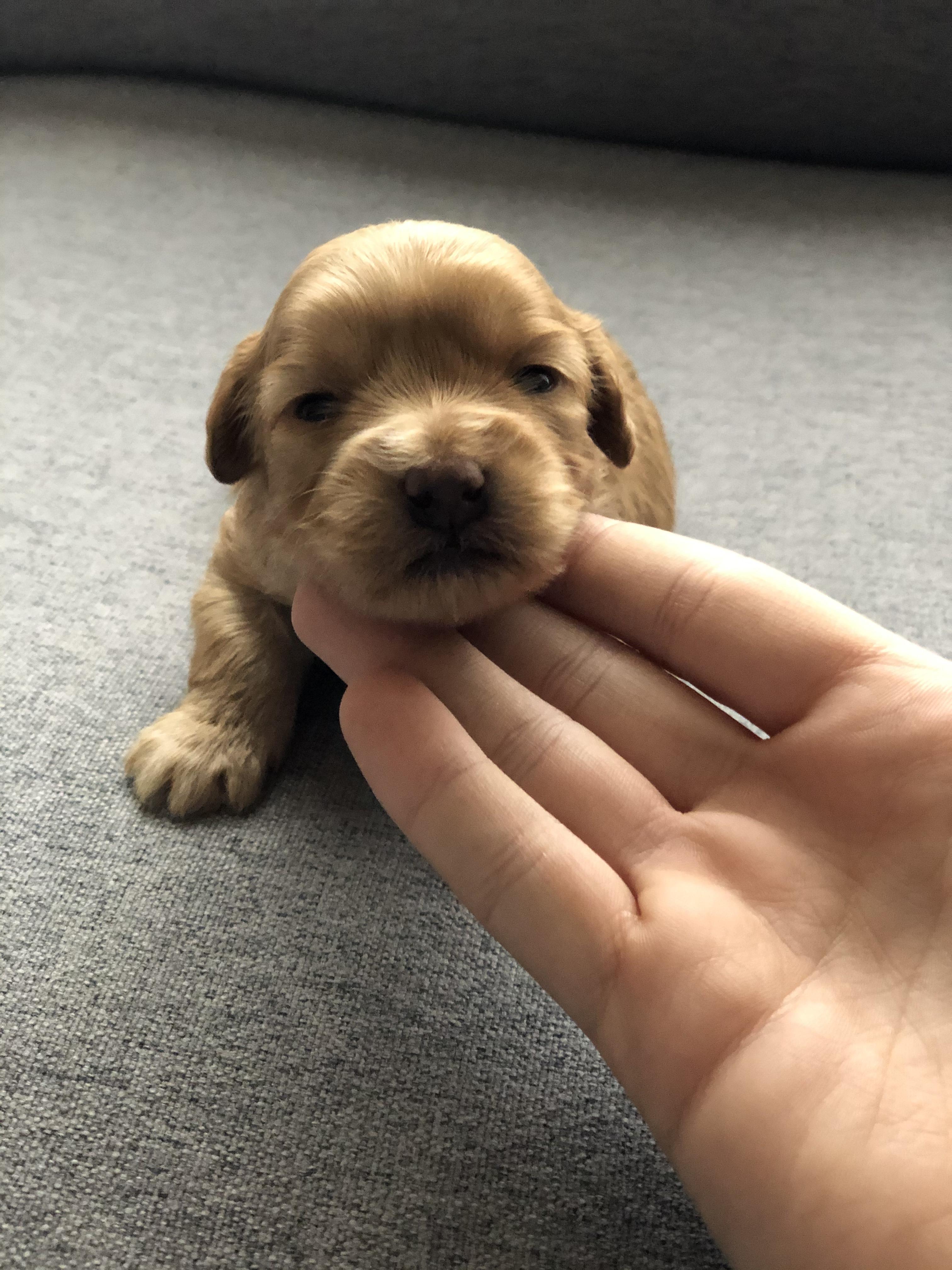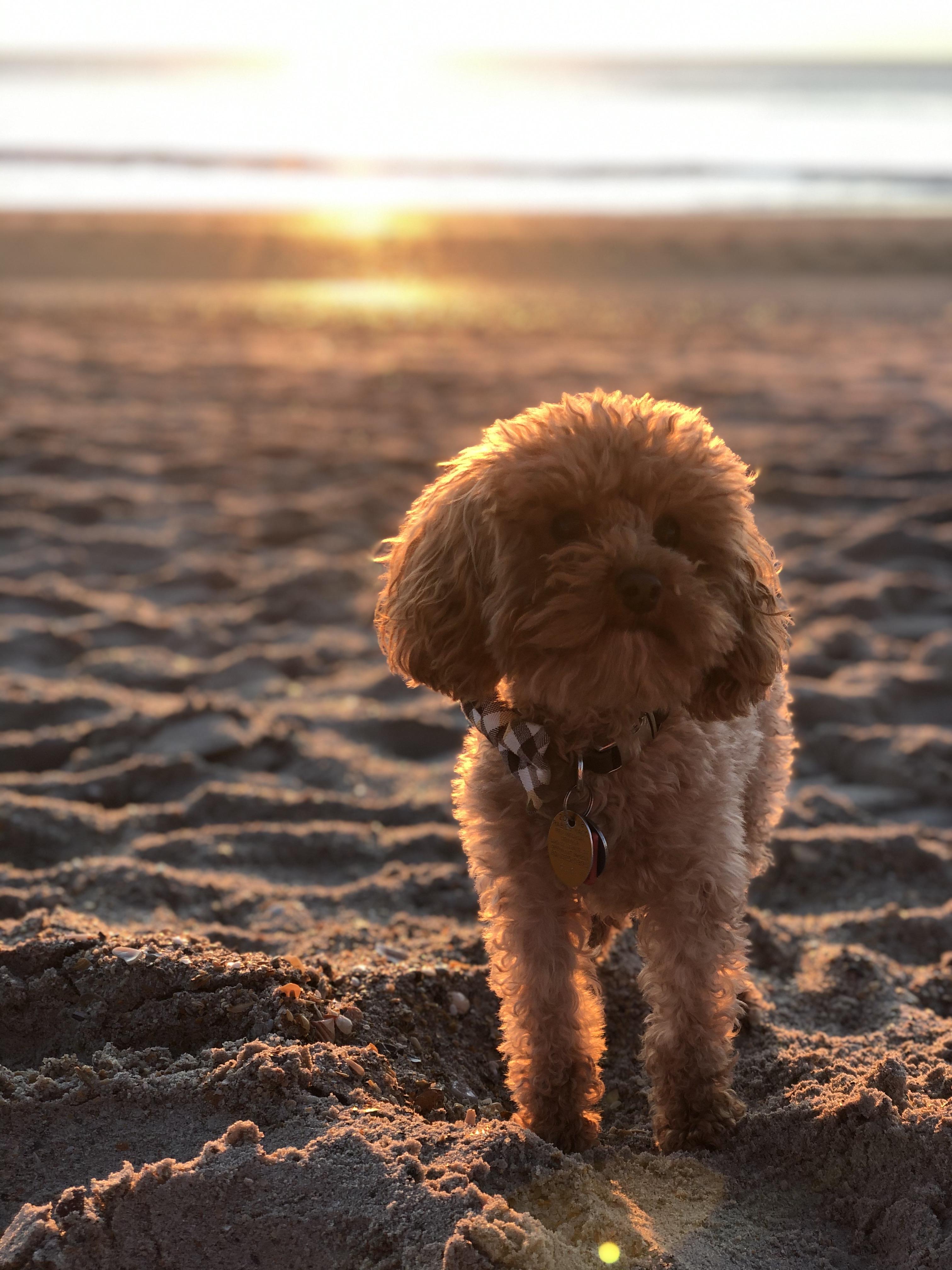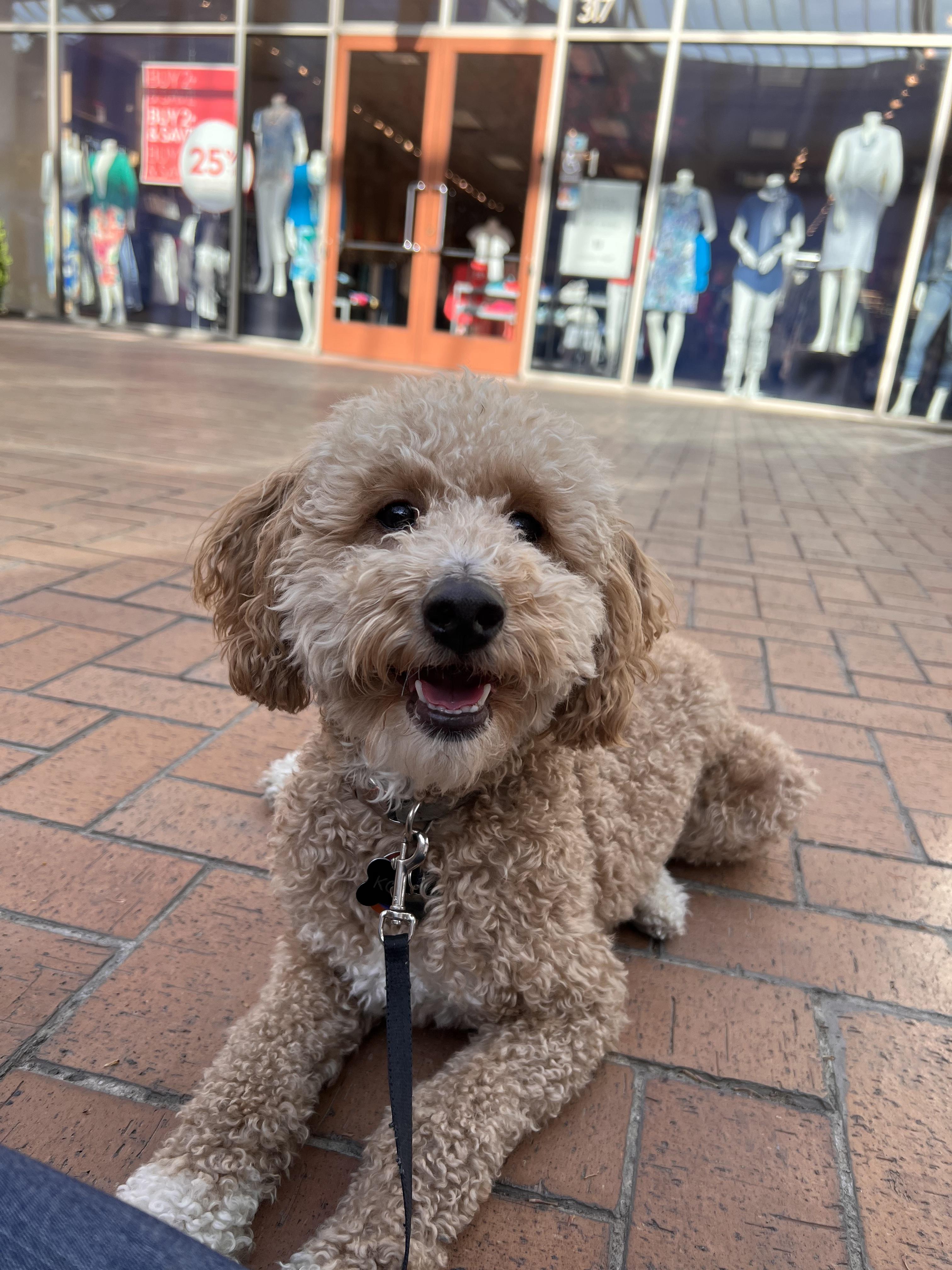 Koda is a beautiful cream and white AKC miniature poodle weighing in at 18 pounds. He is so sweet and such a people person. Everyone who has met Koda instantly falls in love with his charming personality and beautiful coloring. Koda is adventurous, obedient, and outgoing. Some of his favorite things include going on walks, playing tug of war, and playing with a squeaky toy! He is also very cuddly, and loves to snuggle right up next to you any chance he gets.