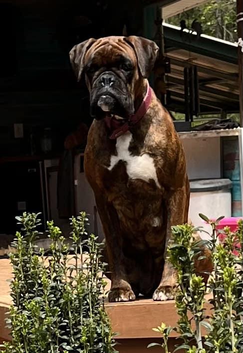 Legend is a male Boxer. Carefully selected as a great representative of his breed, Ashley decided to make him part of their program. Ashley has passed Good Dog’s screening process, which involved a review of their breeding practices, environment, and the mental and physical health of their dogs.