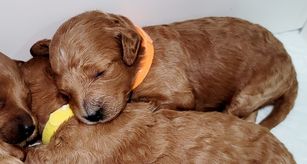 Betty is a female Goldendoodle. Carefully selected as a great representative of her breed, Natalya decided to make her part of their program. Natalya has passed Good Dog’s screening process, which involved a review of their breeding practices, environment, and the mental and physical health of their dogs.
