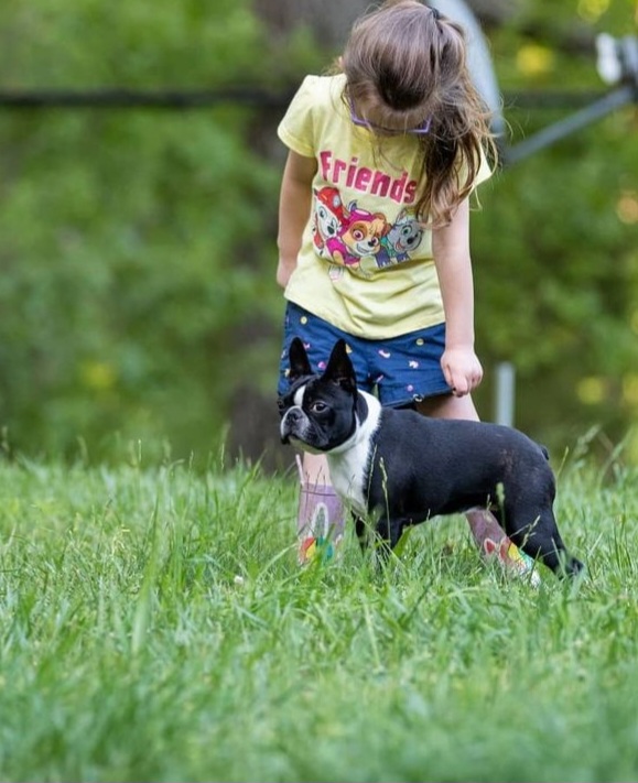 Uni is a female Boston Terrier. Carefully selected as a great representative of her breed, Stephanie decided to make her part of their program. Stephanie has passed Good Dog’s screening process, which involved a review of their breeding practices, environment, and the mental and physical health of their dogs.