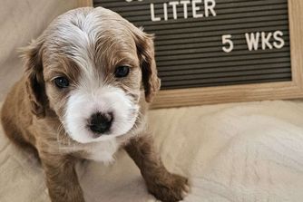 I'm Trina D., the breeder behind Echo Valley Cavapoos located in Kingsville, MO. Our Cavapoos are born and raised in our dining room! We put hours into desensitizing and socializing them so they can transition easily into their new lives. Our puppies are exposed to cats, toddlers and strangers. We are looking for buyers that will provide our puppies with the same level of love.