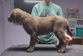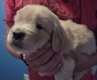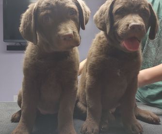 Our Chesapeake Bay Retriever puppies are brown. Golden Retriever puppies are golden. Colors will vary depending on the parent dogs.