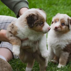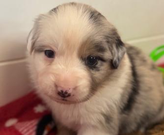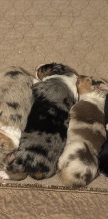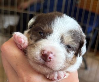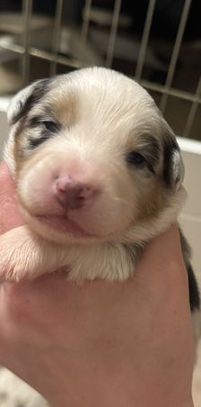 Our puppies include red & white, black & white, red merle, blue merle, black tri-color, and red tri-color. Colors will vary depending on the parent dogs.