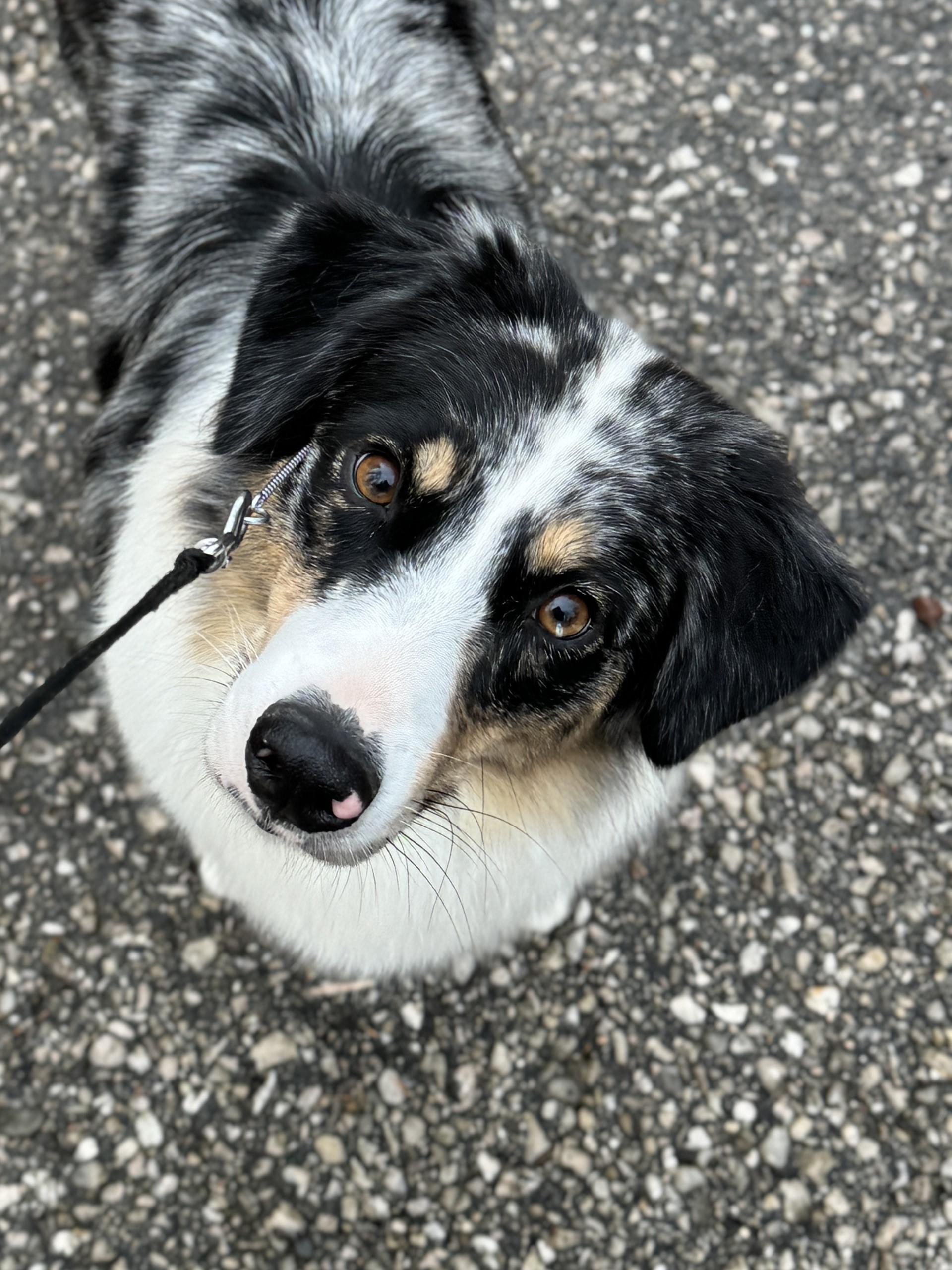 Creed is a calm energy, medium drive, thoughtful boy with an “old soul” demeanor. He is kind and stable minded, and gets along with other dogs wonderfully. He is truly old school “aussie-reserved” with new people - he will say hello with a little lick or a nose boop, then generally go about his business.