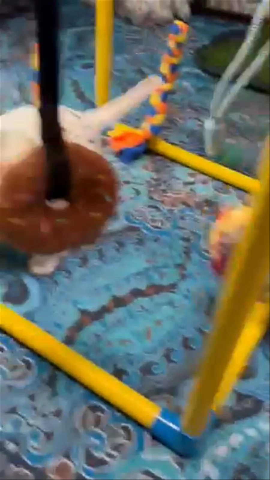 First trip outside! Meeting the horses also! 5 1/2 weeks old