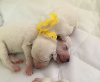 Our Dalmatian puppies include white and liver brown and white and black. Labrador Retriever puppies include black and yellow. Colors will vary depending on the parent dogs.