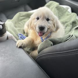 Ed was super responsive and answered all our concerns while we waited for the pup. He even called us every other time to check up on us and gave us some updates. Our puppy, Buzz, is a smart little boy. Ed did some potty training, and Buzz came to our house doing all his needs in the backyard (of course, accidents happen). He’s turning into a very handsome golden, and that’s also thank to Ed’s dogs. We are just living the dream with our new family member!