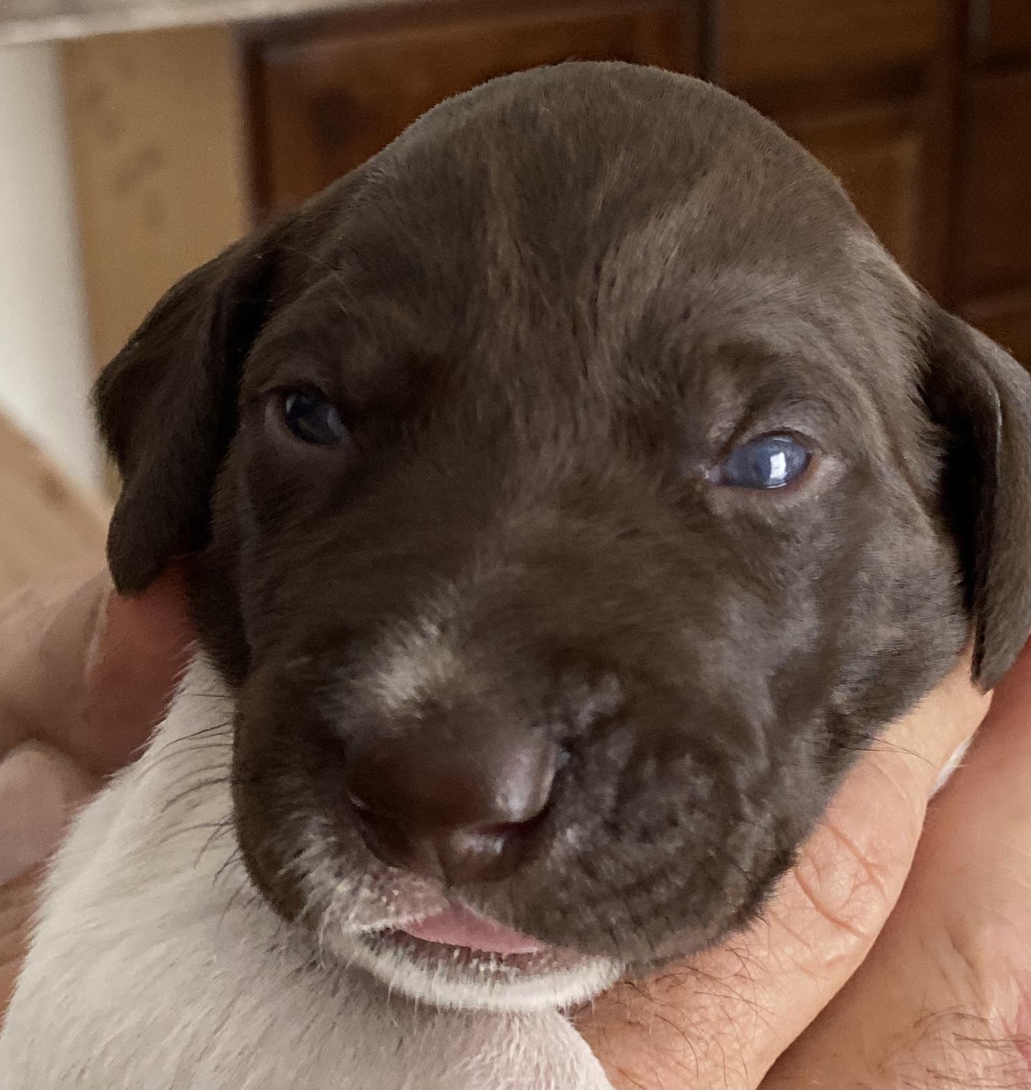 Ada is a female German Shorthaired Pointer. Carefully selected as a great representative of her breed, Ann decided to make her part of their program. Ann has passed Good Dog’s screening process, which involved a review of their breeding practices, environment, and the mental and physical health of their dogs.