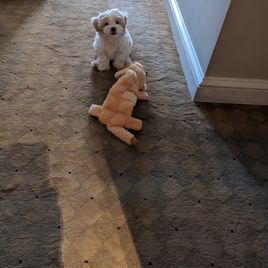 Edna is wonderful to work with. I traveled from out of state and she was very accommodating with the challenges I had during travel. My Maltipoo pup has clearly been cared for well. Although Edna claimed no training, he is eager to please, affectionate, and responsive. This has resulted in it being much easier to train him. The trust that he has learned developed a loving and cuddly pup to all. I hope to get him approved as a therapy dog to bring love and joy to those in hospitals, nursing homes etc. as I serve as a Chaplain. He is too wonderful not to be shared. Thank you Edna.