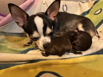 AKC registered and well tempered. She’s a good mama and she is a short coat Applehead chihuahua.