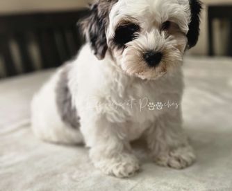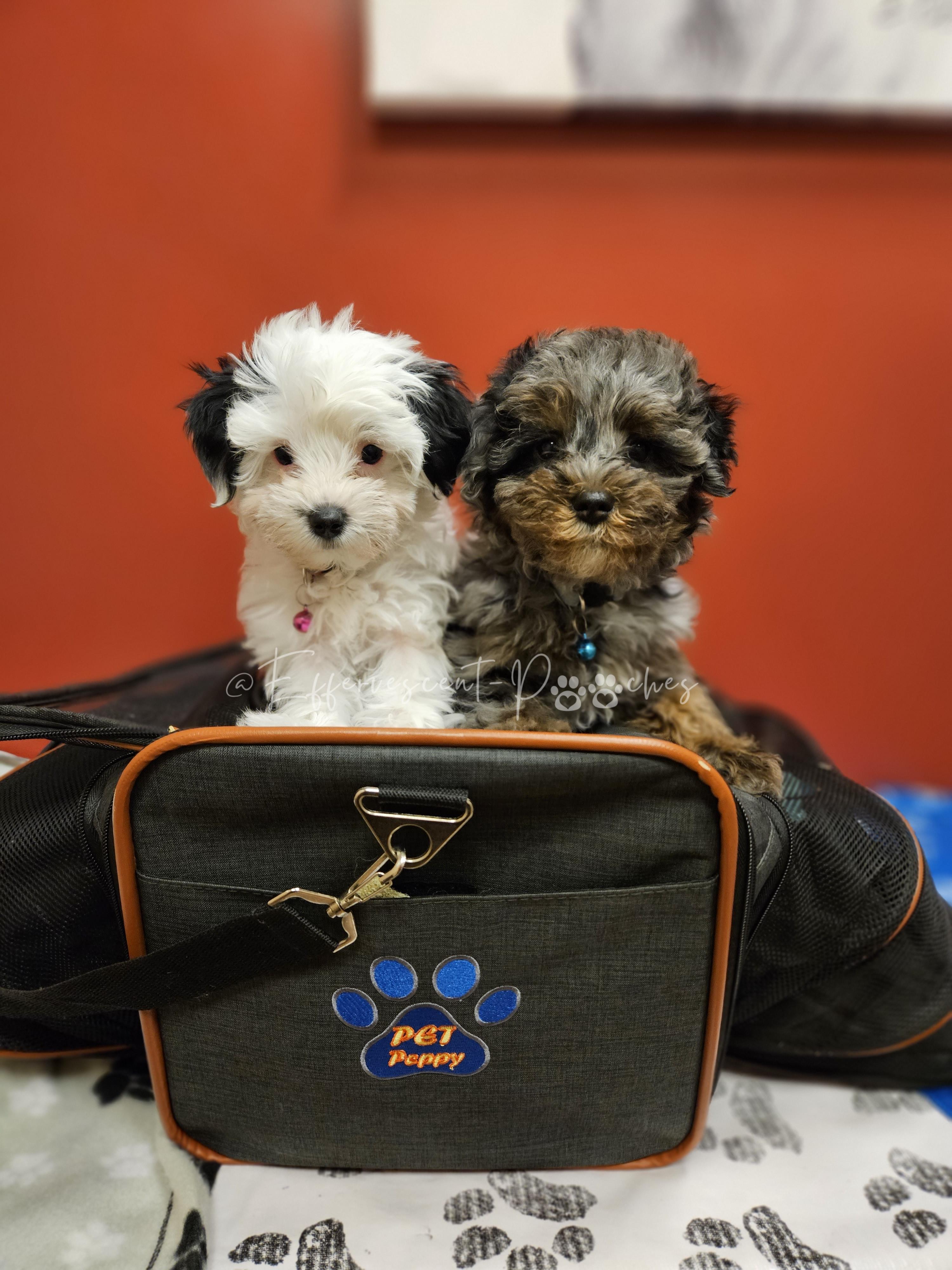 Our Yorkshire Terrier puppies include chocolate and tan, parti, and black and tan. Yorkipoo puppies include white, blue and gold, black and tan, and black. Poodle puppies include brown, cream, parti, and phantom. Colors will vary depending on the parent dogs.