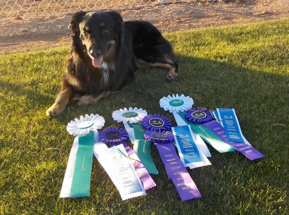 Maverick is currently competing in Rally, Obedience, and Agility.