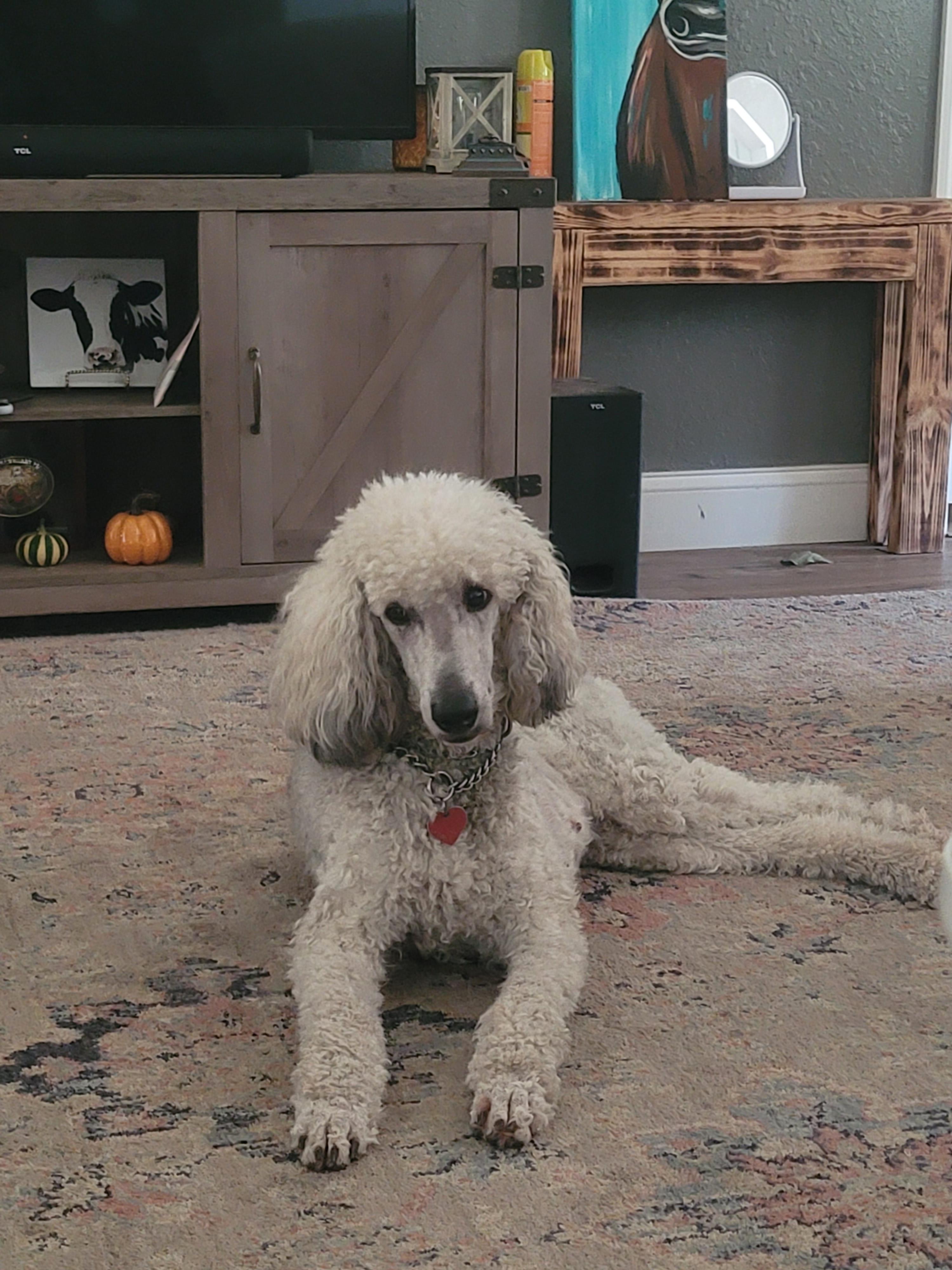 LATTE is a female Poodle almost 3 years old. Carefully selected as a great representative of her breed, Elaine decided to make her part of their program. Elaine has passed Good Dog’s screening process, which involved a review of their breeding practices, environment, and the mental and physical health of their dogs.