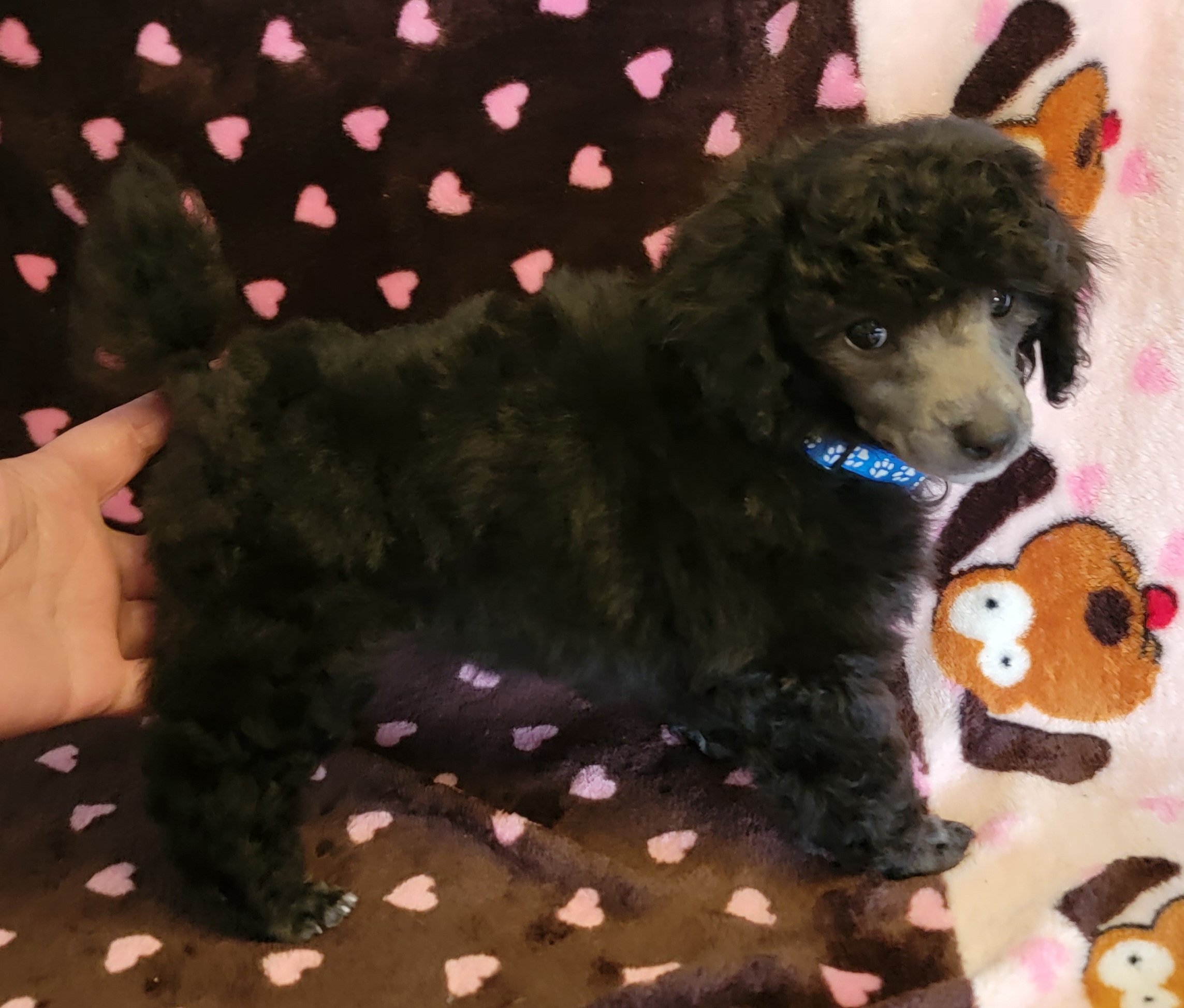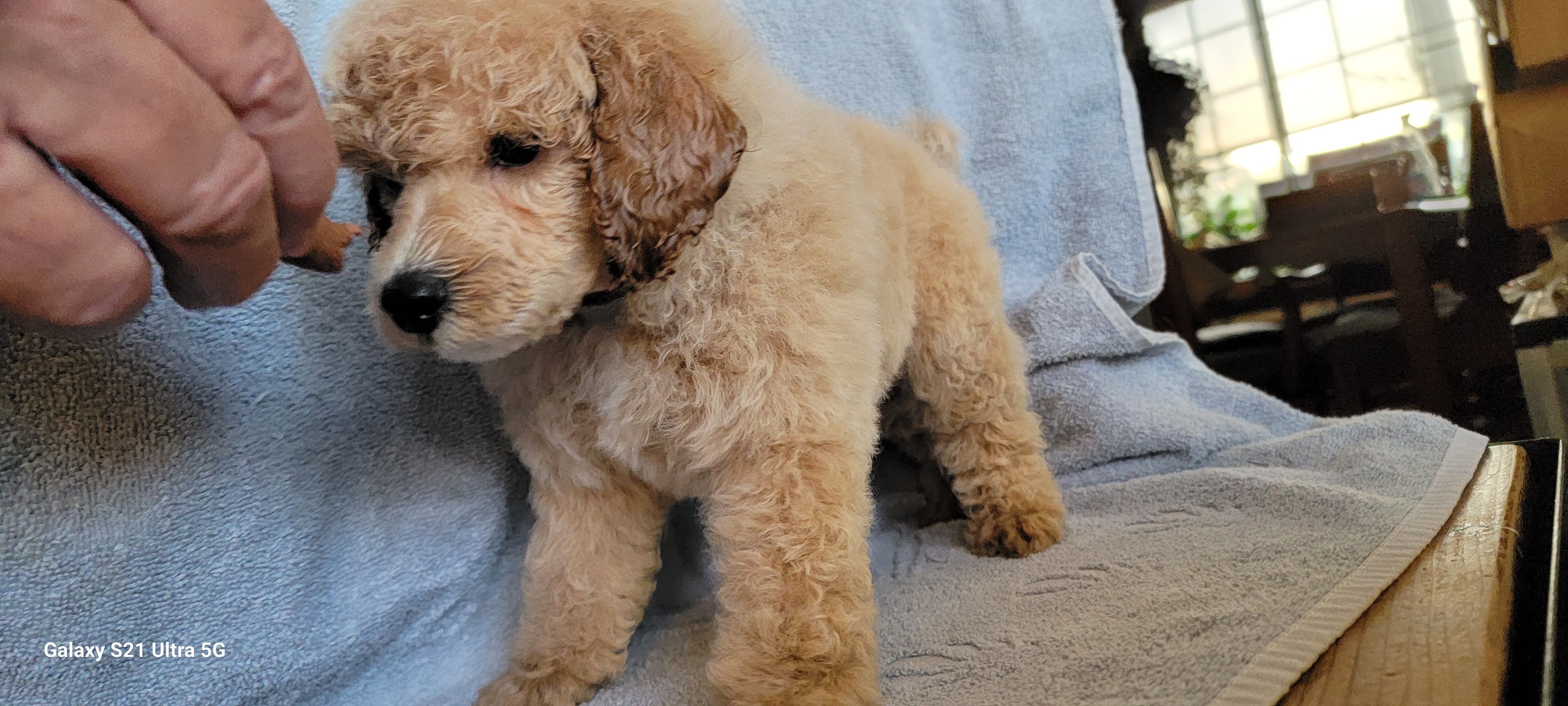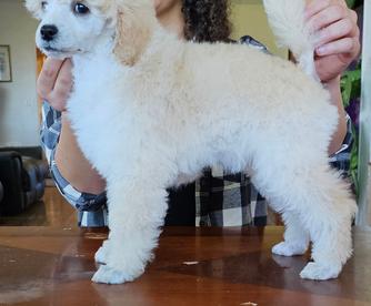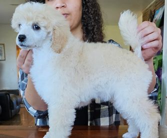 I'm Don L., the breeder behind E-Lattion Miniature Poodles LLC located in Lebanon, OR. All of our puppies are bred, raised, and loved indoors to produce happy, healthy pets for those seeking the best family companion! We are a small, in-home breeding program where we prioritize giving each dog and puppy the best care that we can. We cherish all of our animals and enjoy sharing the love of this breed with other individuals Please note testing provided on OFA and search using part of name E-Lattion. My puppies have a 1 year health guarantee against genetic diseases. They come with 30 days free trupanion insurance. They have tails and dews done at the vet and will have a well puppy check at 7 weeks where they will receive first shots and additional worming. Puppies are raised in our home where they are interacted with daily.. when they come home to you they should be used to grooming :blow drying, clippers, baths, dremmel and clippers for toenails.
