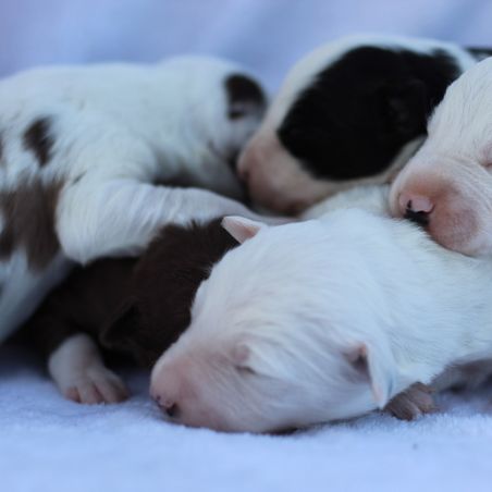 Our puppies include tri-color, black and white, blue merle, red merle, white and blue merle, white and red, and white and red merle. Colors will vary depending on the parent dogs.