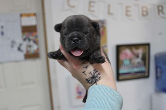 Onyx is a female French Bulldog. Carefully selected as a great representative of her breed, Leslie decided to make her part of their program. Leslie has passed Good Dog’s screening process, which involved a review of their breeding practices, environment, and the mental and physical health of their dogs.