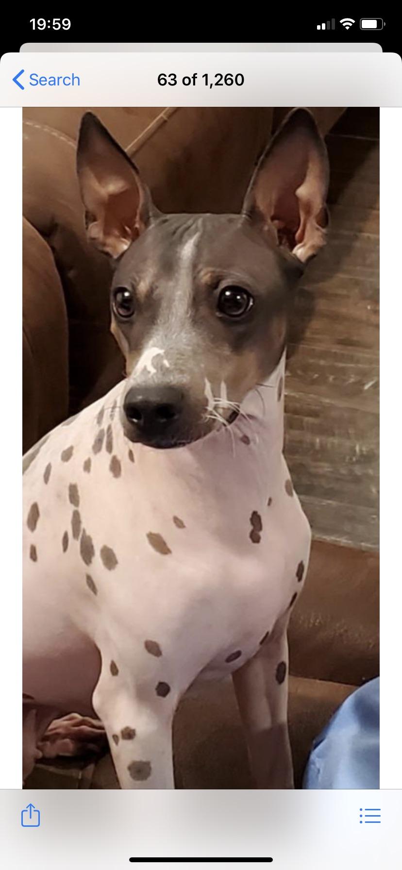 Tesla is a female American Hairless Terrier over 4 years old. Carefully selected as a great representative of her breed, Karen decided to make her part of their program. Karen has passed Good Dog’s screening process, which involved a review of their breeding practices, environment, and the mental and physical health of their dogs.
