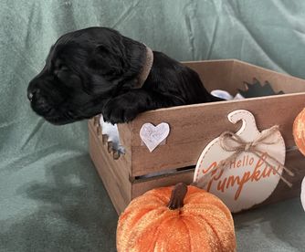Our puppies are black. Colors will vary depending on the parent dogs.