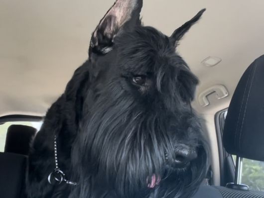 Legend is a charm magnet that checks out all giant boxes! His temperament and confirmation has made competing with him in different activities like Fast Cat and Confirmation shows so much fun! He loves to play fetch and be silly with family and friends but also shows great natural Giant schnauzer characteristics that make this breed phenomenal! He is loyal, smart, confident and loving! We could write a book on how great he is!
