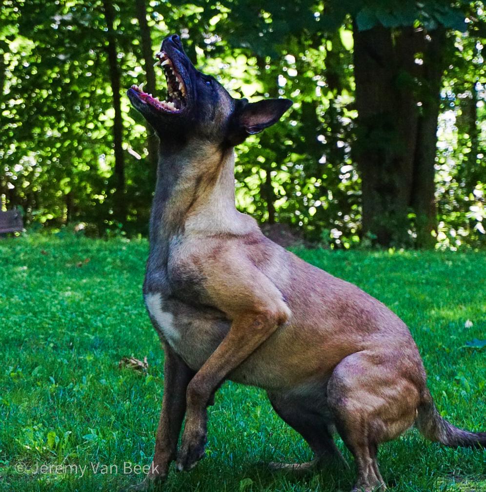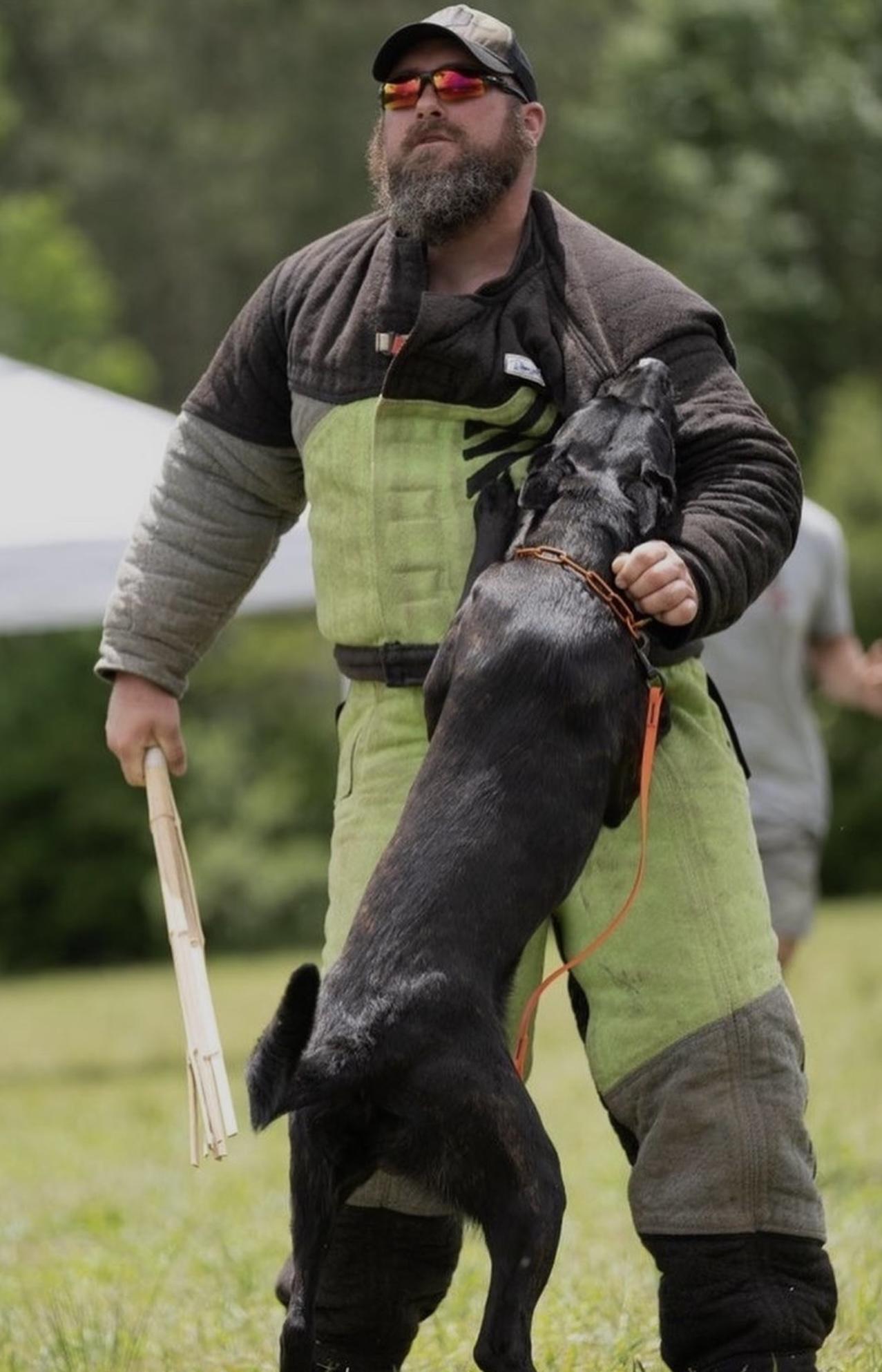 Youp weighs in at 95lbs and is a specimen to look at. Very intense looking dog, but extremely stable. High driven dog that can be very bold and possessive if not managed properly. Super confident environmentally in and out of drive. Calm and full grips. Superior hunting drives as well. Very well rounded dog, but is very hard headed and strong.