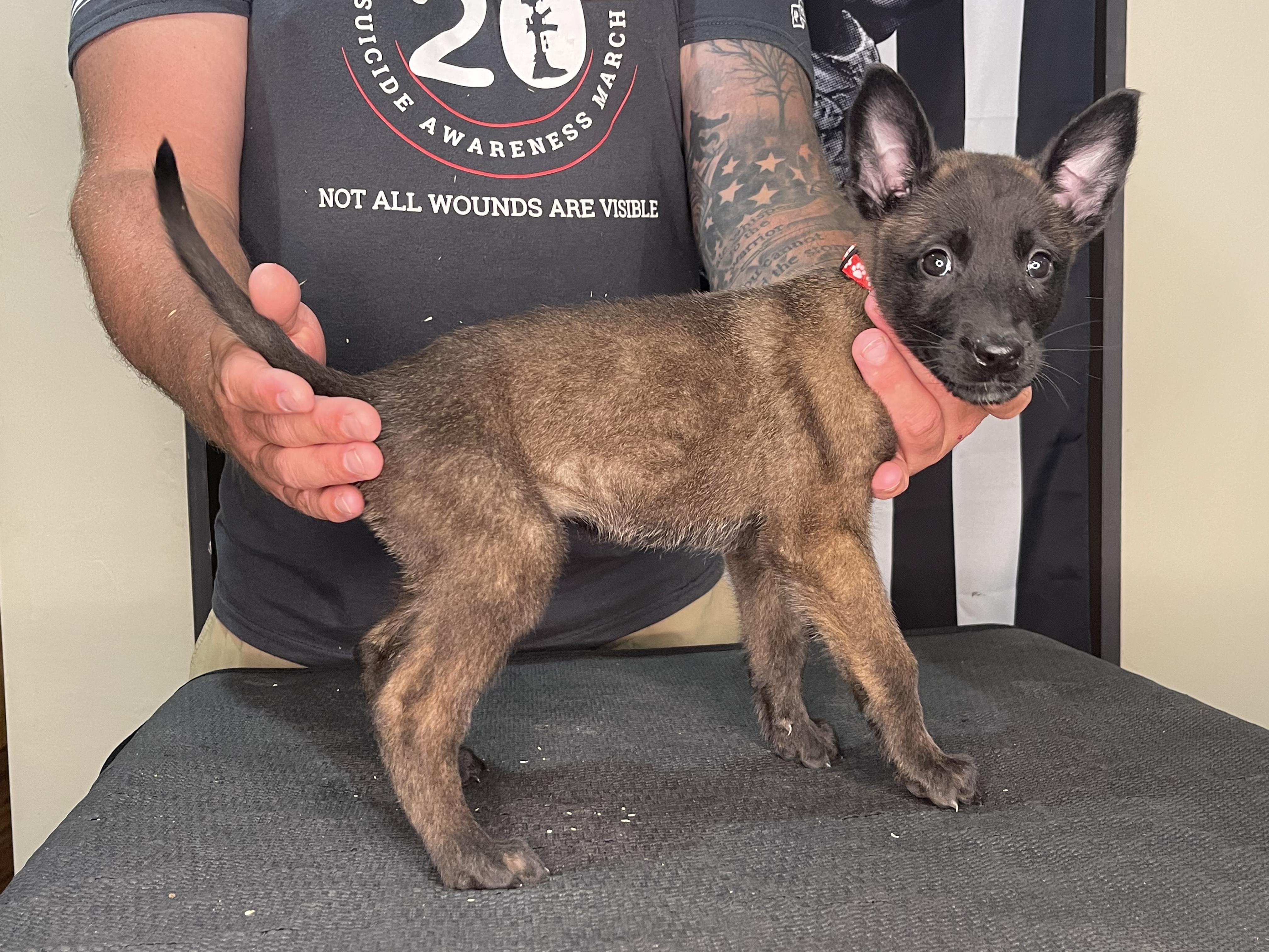 Tilla is a female Belgian Malinois. Carefully selected as a great representative of her breed, Jeremy decided to make her part of their program. Jeremy has passed Good Dog’s screening process, which involved a review of their breeding practices, environment, and the mental and physical health of their dogs.
