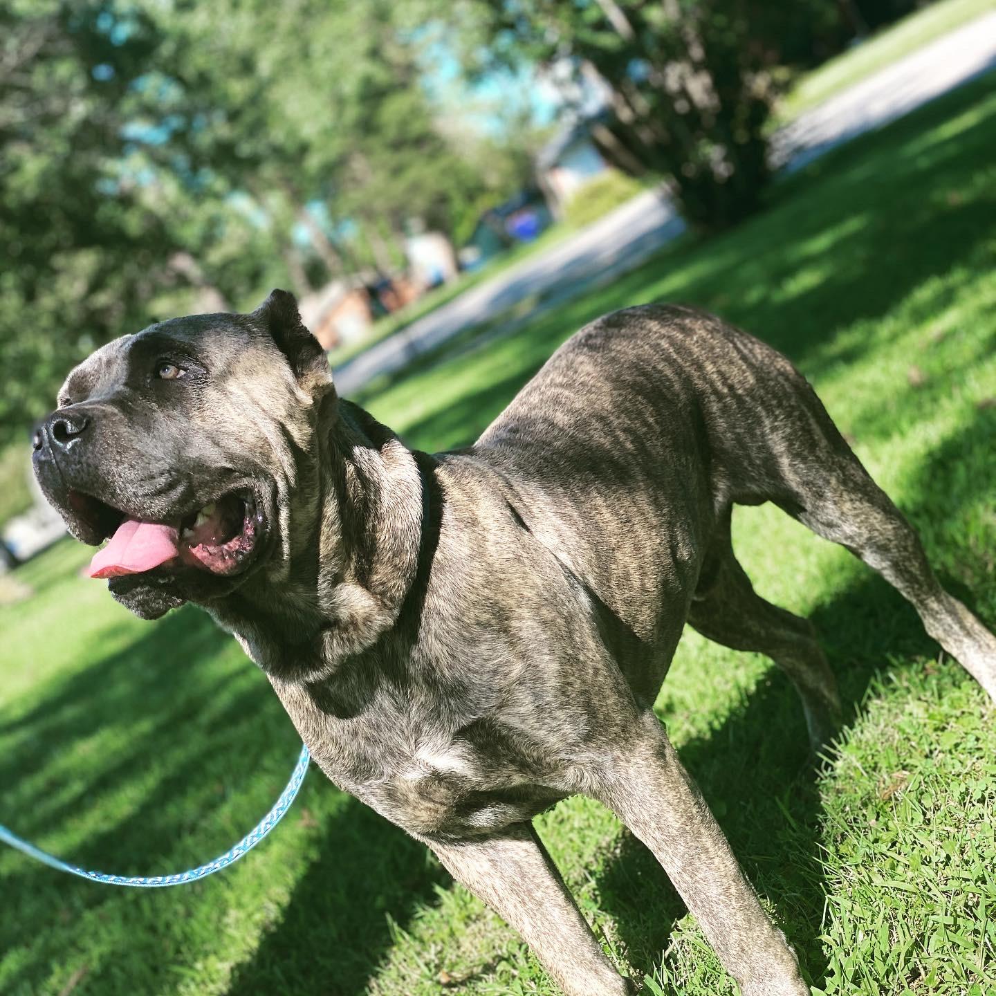 G is a male Cane Corso. Carefully selected as a great representative of his breed, Andrew decided to make him part of their program. Andrew has passed Good Dog’s screening process, which involved a review of their breeding practices, environment, and the mental and physical health of their dogs.