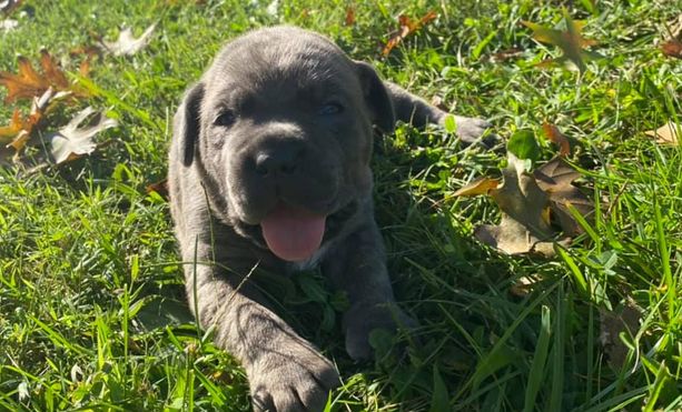 Our Cane Corso puppies are gray brindle. French Bulldog puppies are fawn. Colors will vary depending on the parent dogs.
