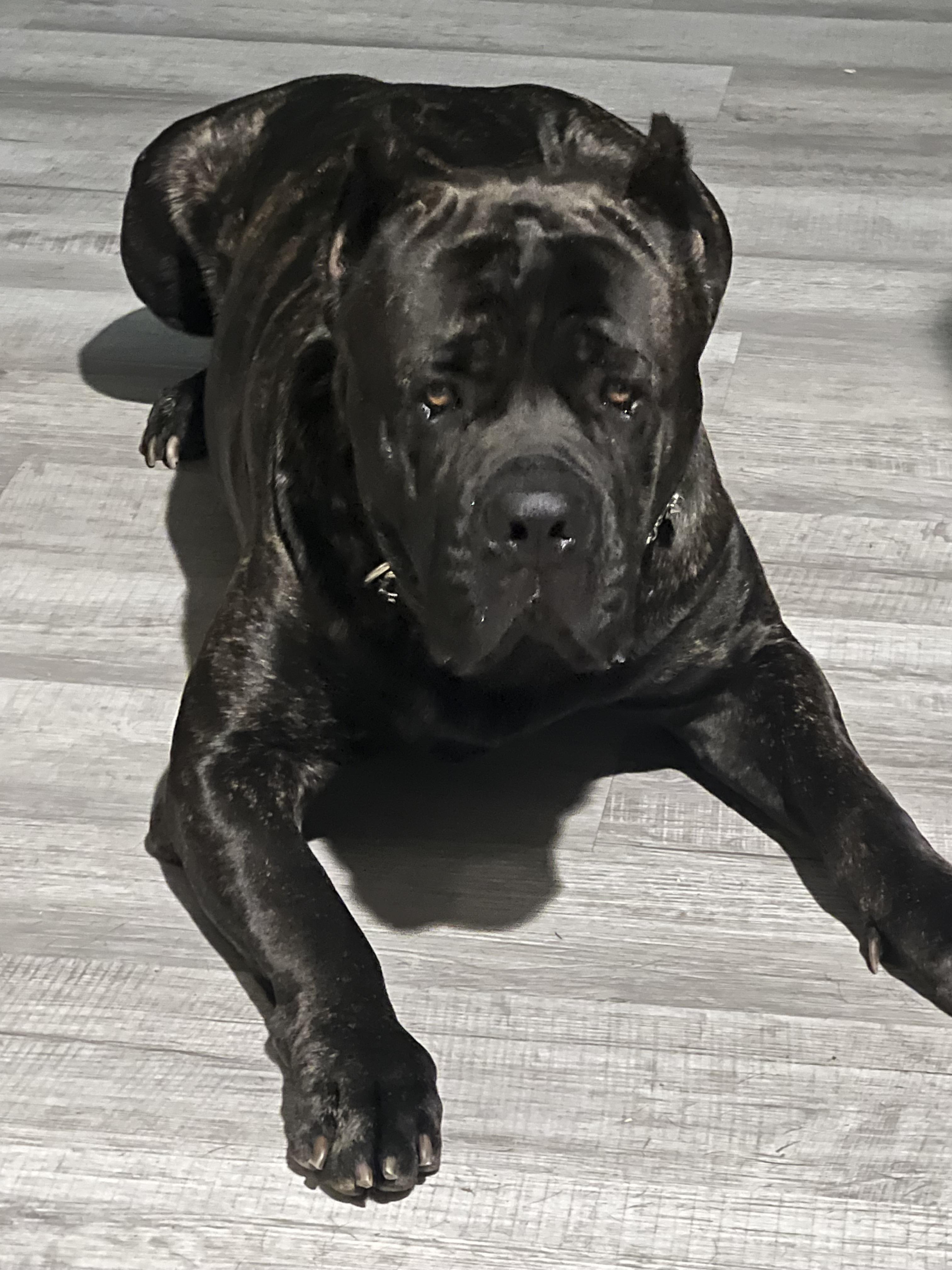 Brick is my handsome black brindle Cane Corso — powerful, protective, and loyal to the core. He’s got a serious look that turns heads, but once you get to know him, he’s all playfulness and heart. Whether he’s watching over the house or chasing his favorite toy, Brick is the perfect mix of guardian and goofball.