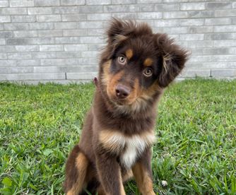 Our puppies include blue merle, black tri, red tri, red merle, and red. Colors will vary depending on the parent dogs.