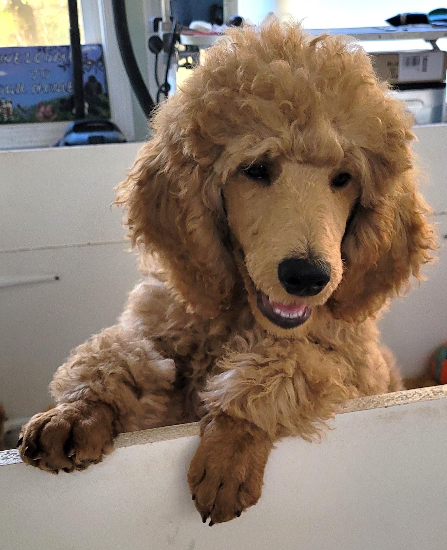 Tucker is a male Poodle. Carefully selected as a great representative of his breed, Robert decided to make him part of their program. Robert has passed Good Dog’s screening process, which involved a review of their breeding practices, environment, and the mental and physical health of their dogs.