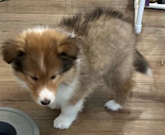Our puppies are sable and white. Colors will vary depending on the parent dogs.