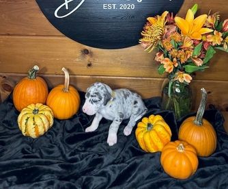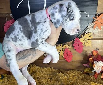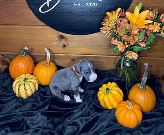 I'm Amelia L., the breeder behind Elja Danes located in Aspers, PA. We love to responsibly raise and train Great Danes so they have the tools to be well-rounded, beloved family members. We offer healthy puppies who will excel in any adventure with their new family! Our dogs are intelligent and loving, and they produce wonderful pups. We're passionate about these dogs and are careful to breed and raise our pups with only the best policies.