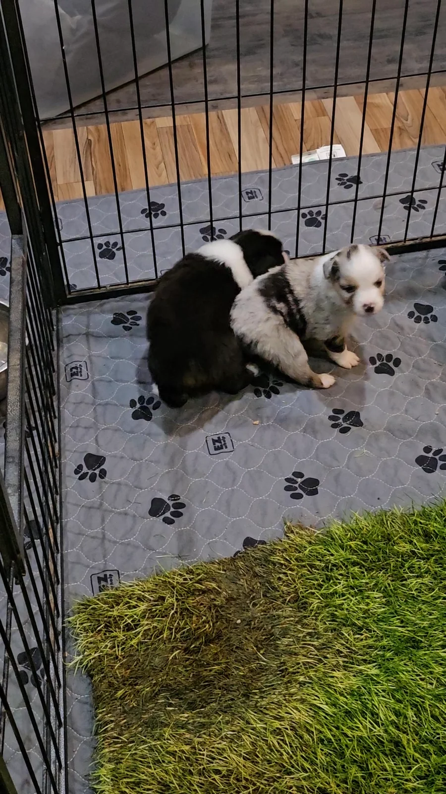 Our puppies include red & white, red merle, blue merle, red, and red tri-color. Colors will vary depending on the parent dogs.
