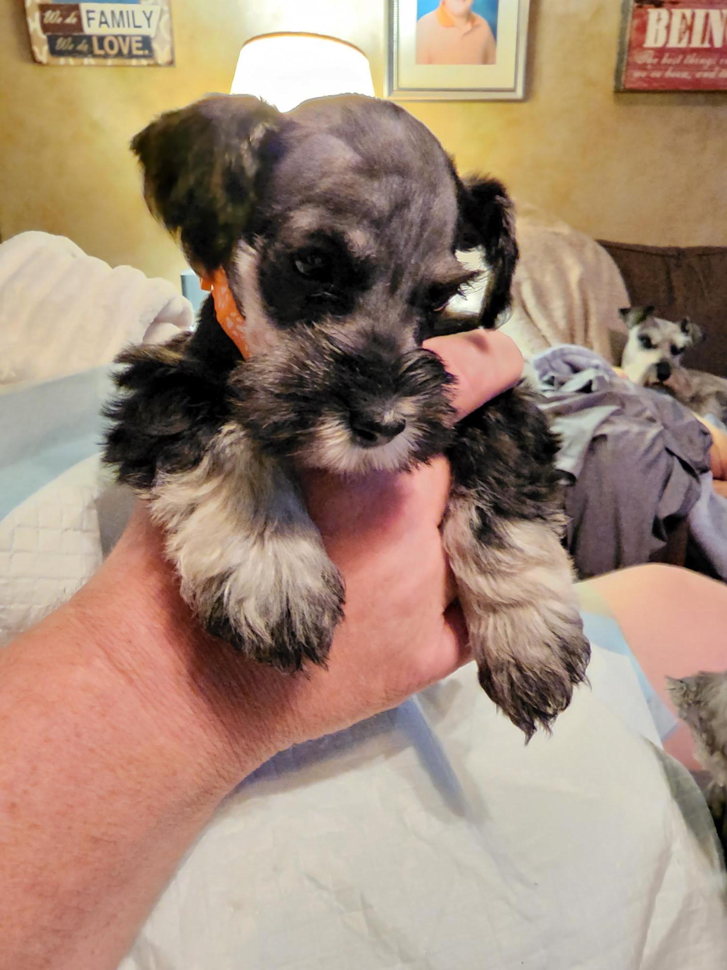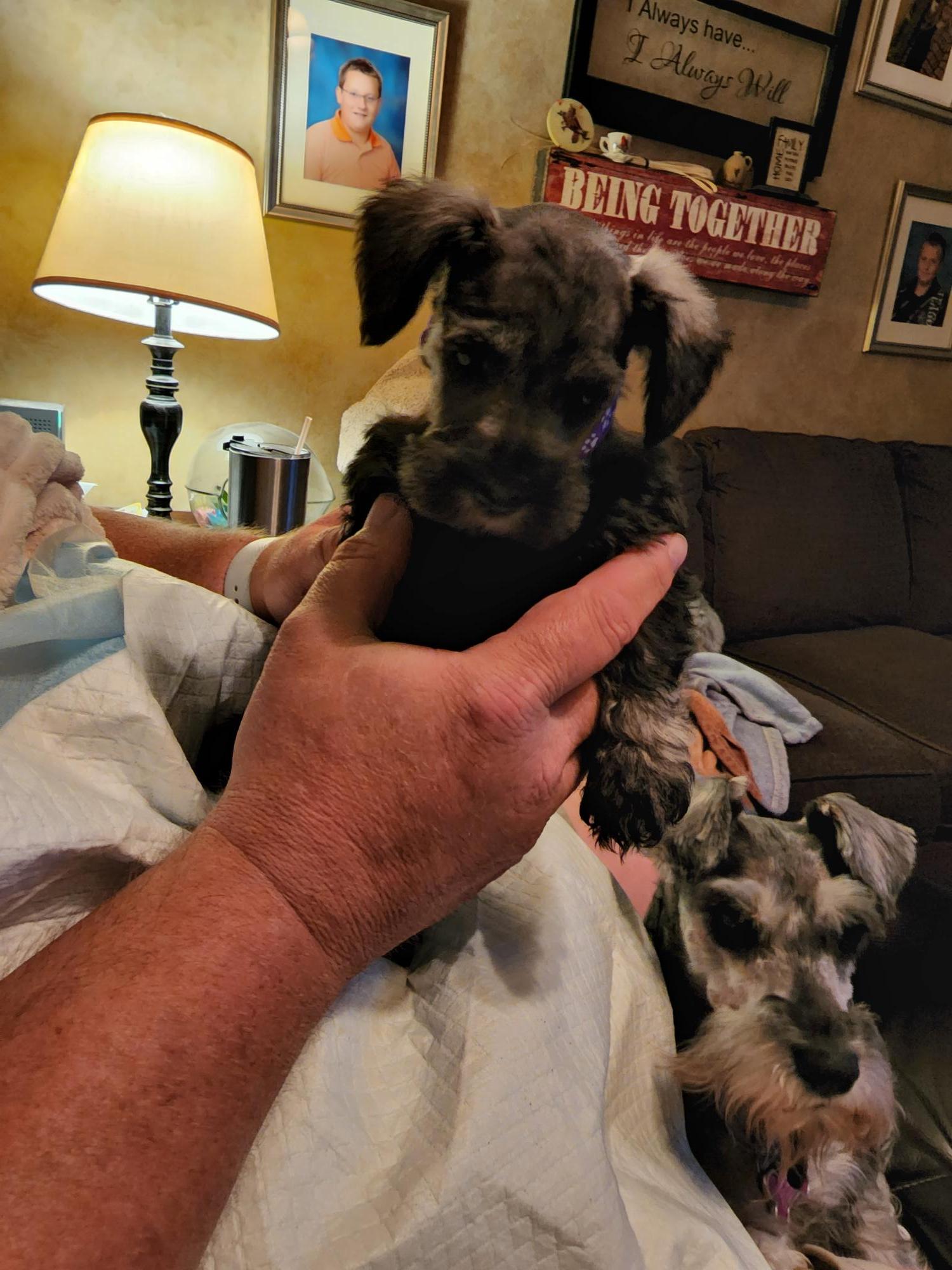 We just do it for the love of the breed. We only breed one time a year. We really like the personalities of the schnauzers.