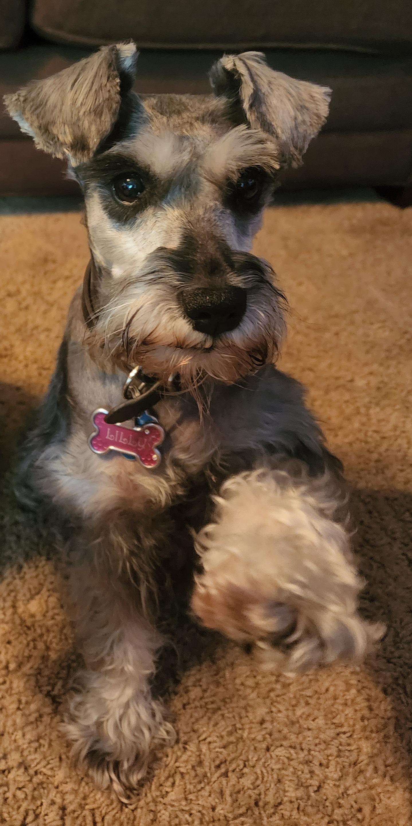 Lily is a female Miniature Schnauzer. Carefully selected as a great representative of her breed, Gina decided to make her part of their program. Gina has passed Good Dog’s screening process, which involved a review of their breeding practices, environment, and the mental and physical health of their dogs.