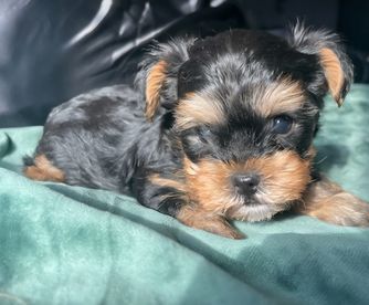 He's our handsome traditional AKC registered yorkie, black and tan with a beautiful white chest and beard. He was born 12.22.21 and he weighs 4 lbs. He's a sweetheart and very adventurous. He's playful, smart and obedient. We're lucky to have our little man!