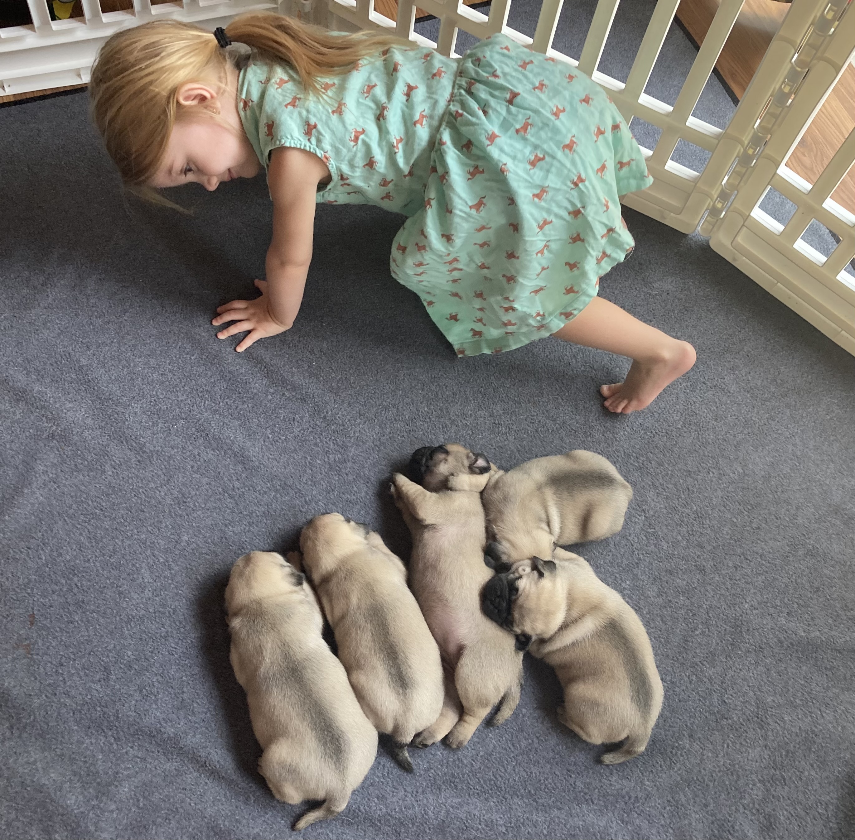 All of our children spend regular time with the puppies making them very loving and sociable from as early as 2 weeks on! Our pugs and their puppies get the best Heath care from our local Veterinarian and we spoil each puppy with loads of attention. We’re a small family breeder whose love for the pug breed pushed us into breeding so we could bless others the way our pugs blessed us! “It’s a Pug thing!”