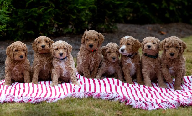 Our puppies include miniature and medium sizes. Sizes will vary depending on the parent dogs.