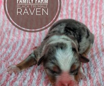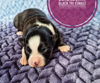 Bear is a super sweet friendly boy. He loves going for long walks, car rides and helping me around the farm. He's a very handsome black tri with beautiful blue eyes.