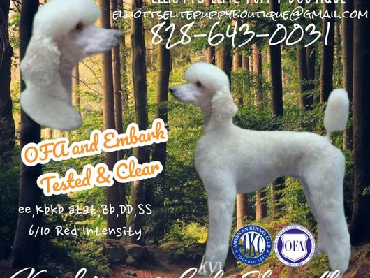 Elliotts Elite Puppy Boutique reports to performing the health tests below on their breeding dogs. Ask your breeder about the tests performed on the parents of your litter. Learn more about health testing for Standard Poodles.
