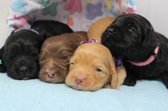 Our puppies include caramel, caramel red, red, apricot, chocolate, cafe, lavendar, parchment, black, silver, and tri-color. Colors will vary depending on the parent dogs.