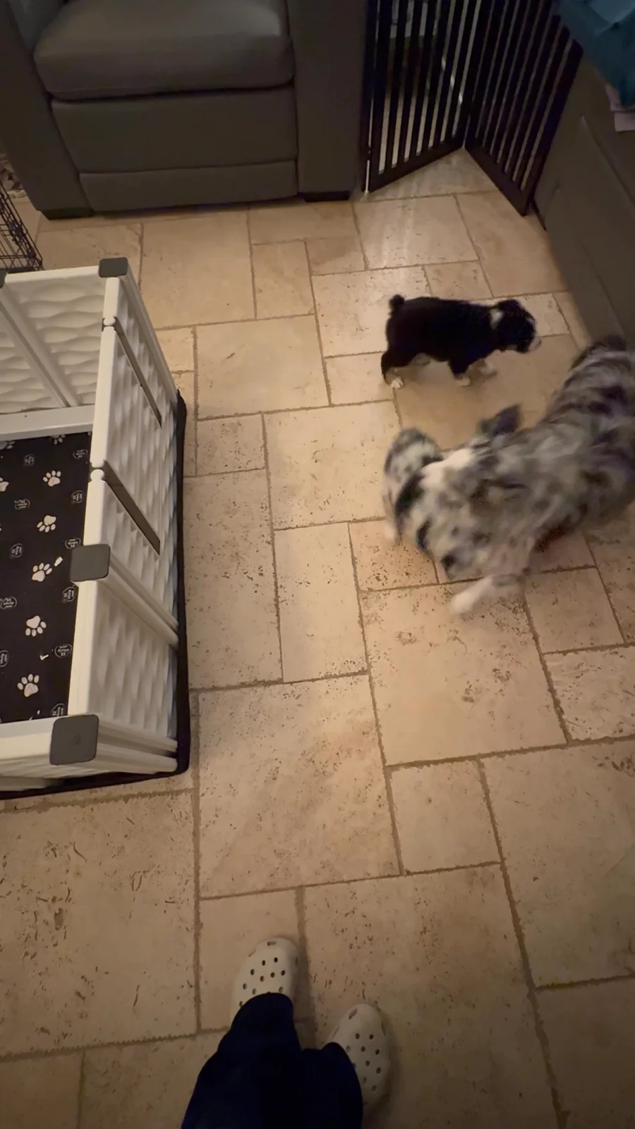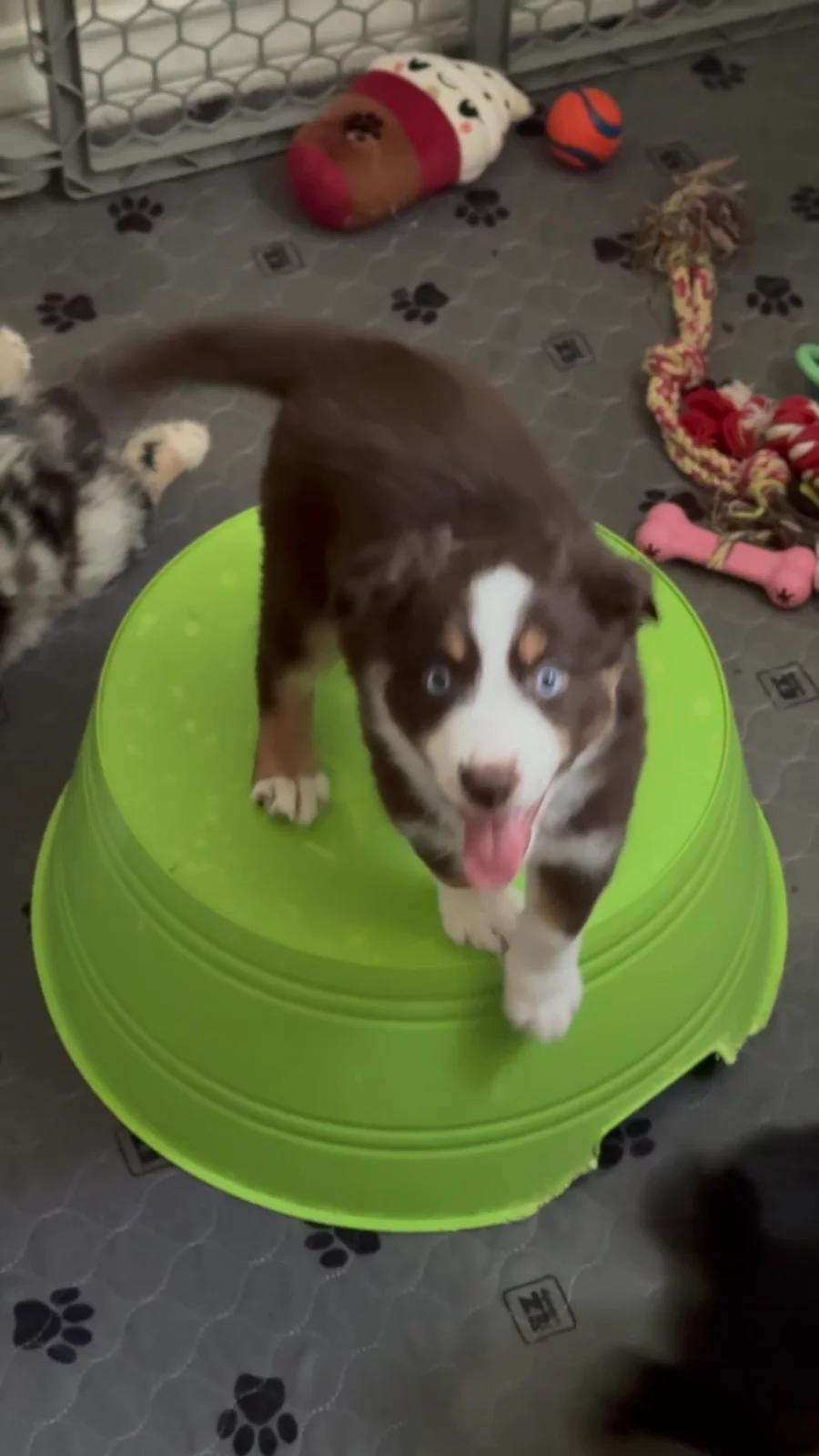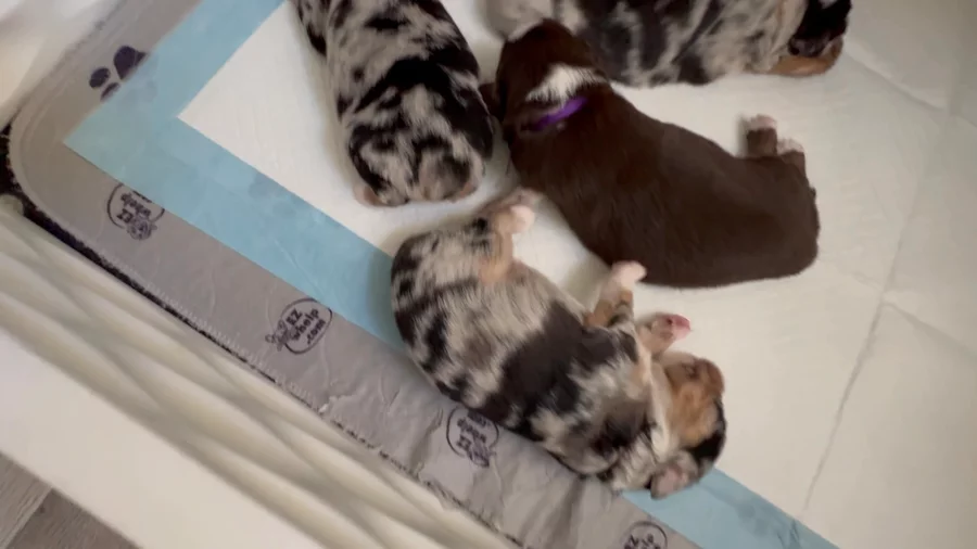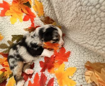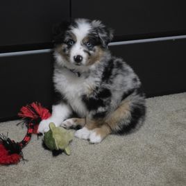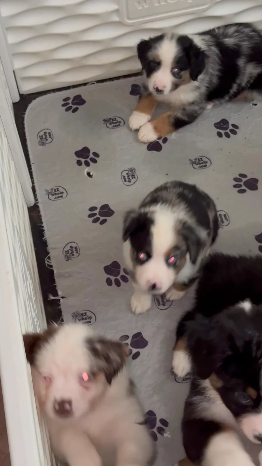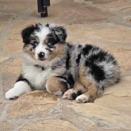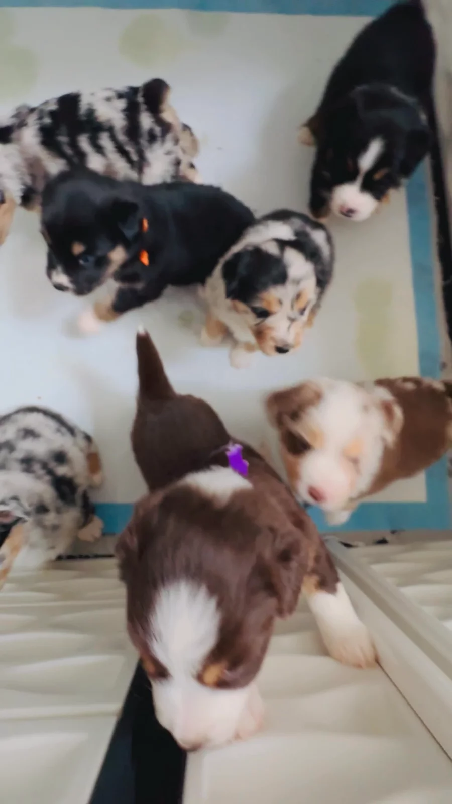 Our puppies include blue merle, black tri, red tri, and red merle. Colors will vary depending on the parent dogs.