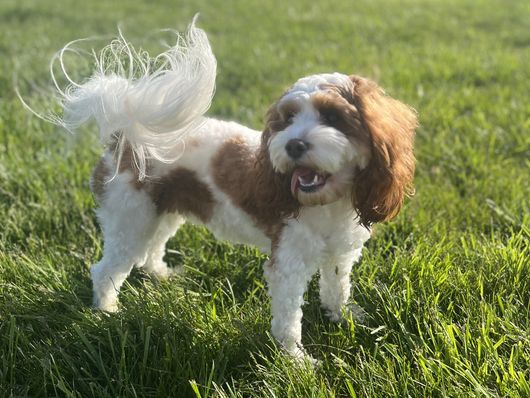 Abby is a female Cavapoo. Carefully selected as a great representative of her breed, Emily decided to make her part of their program. Emily has passed Good Dog’s screening process, which involved a review of their breeding practices, environment, and the mental and physical health of their dogs.