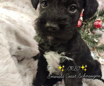 I'm Jacqueline H., the breeder behind Emerald Coast Schnauzers located in Panama City, FL. Our puppys are purebred Miniature Schnauzers. They are registered with at least 1 or more of the following Registries: AKC, APRI, CKC.