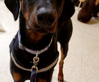 Argos is a male Doberman Pinscher over 6 years old. Carefully selected as a great representative of his breed, Julie decided to make him part of their program. Julie has passed Good Dog’s screening process, which involved a review of their breeding practices, environment, and the mental and physical health of their dogs.